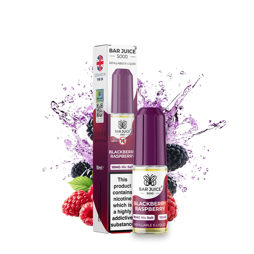 Bar Juice Blackberry Raspberry Nic Salt E-Liquid. One juicy inhale and you're lost in a bramble patch of bold blackberries and tangy raspberries. This Blackberry Raspberry Vape Liquid bursts with a balance of tart and sweet, wrapping your taste buds in berry, enjoy bold blackberries and tangy raspberries bliss that's fresher than a morning dew drop.
